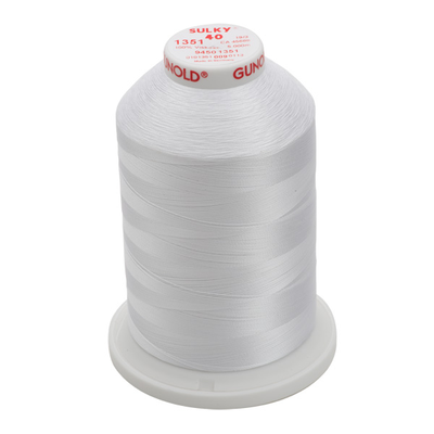 1351-Pure White- 40 WT RAYON SULKY RAYON THREAD 5,500 YD. CONES