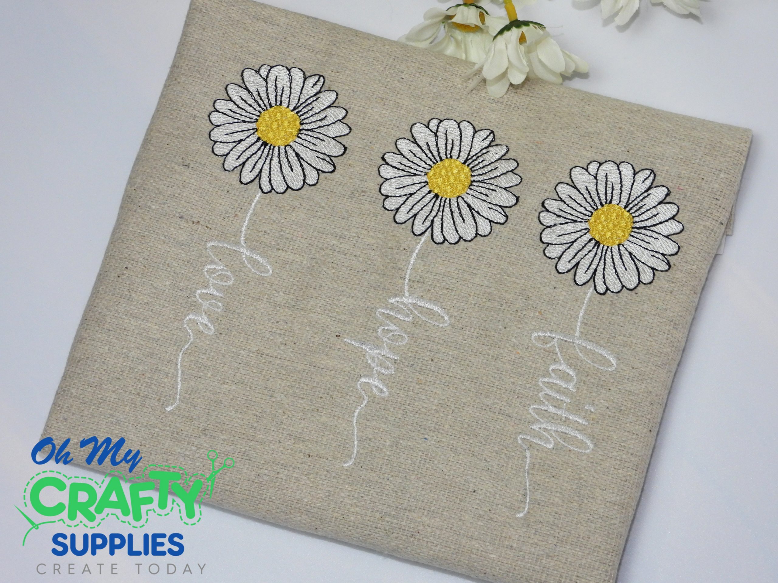 Faith Hope Love Daisies Embroidery Design