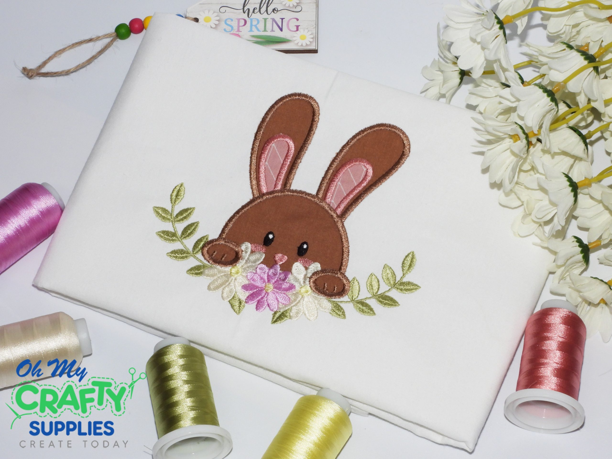 Floral Peeking Bunny Applique Embroidery Design