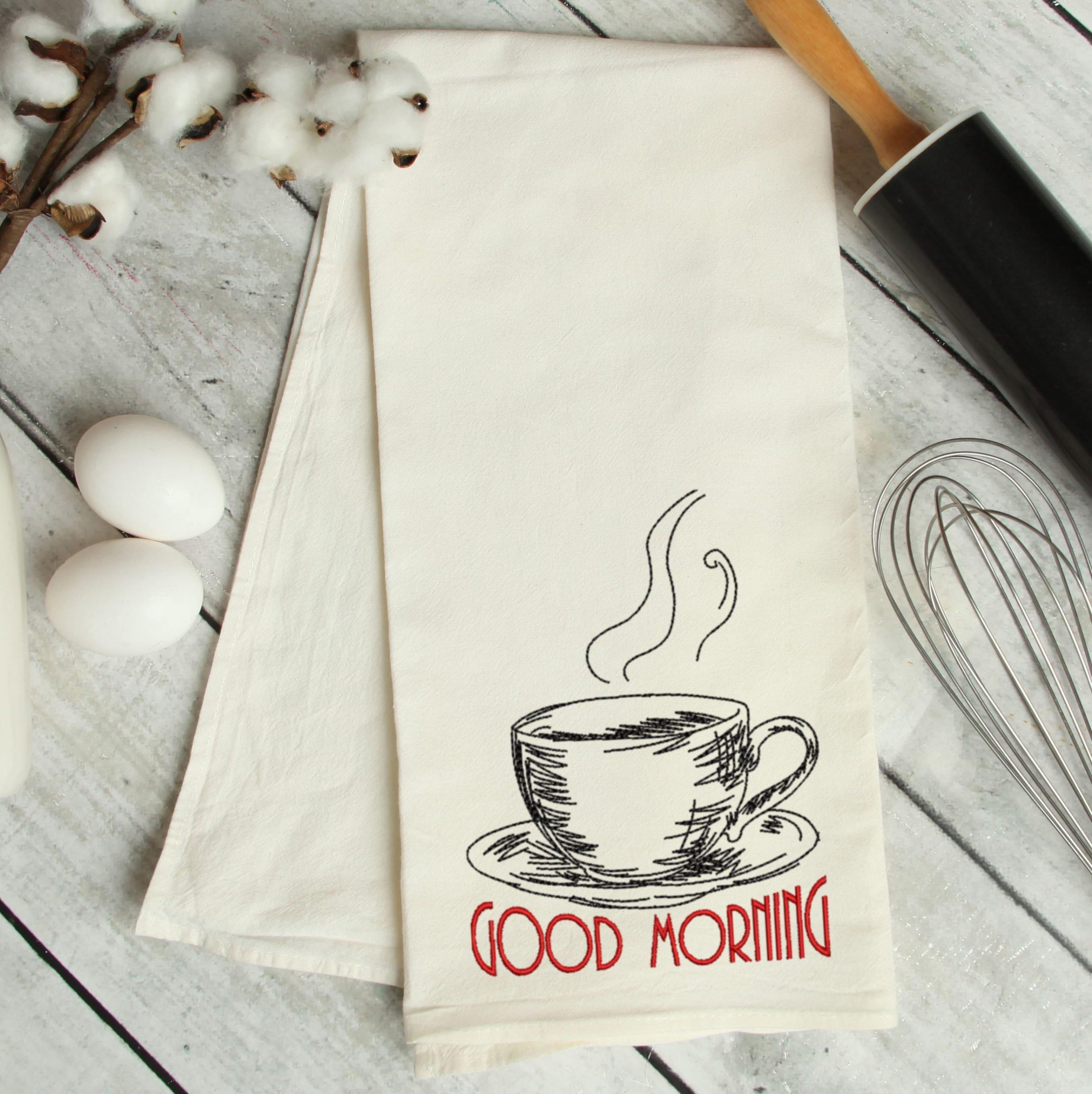 Good Morning Sketch Coffee Embroidery Design