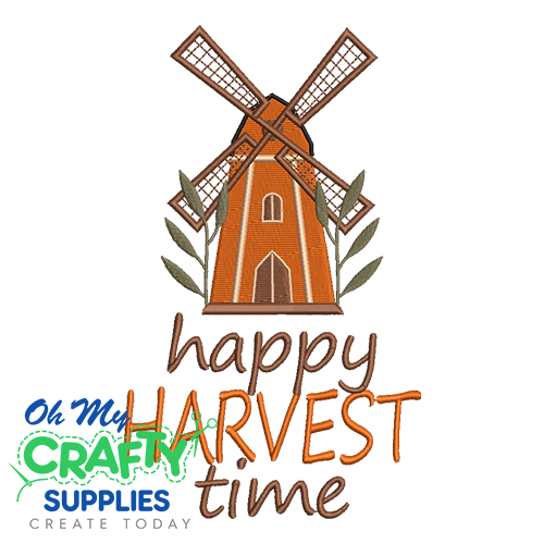 Happy Harvest Time Windmill Embroidery Design