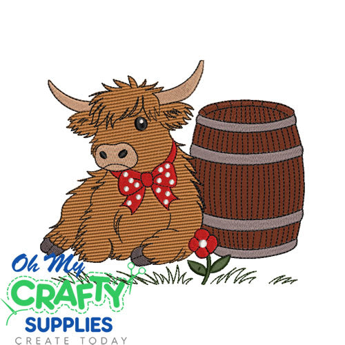 Highland Cow with Barrel Embroidery Design