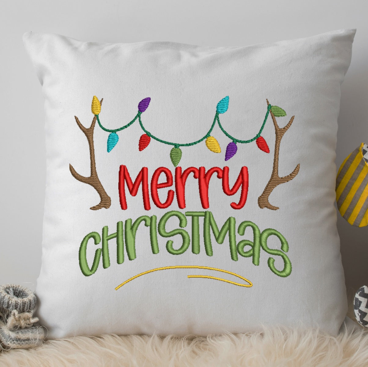 Merry Christmas Reindeer Lights Embroidery Design