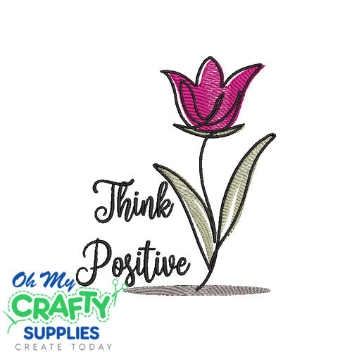 Think Positive Flower Embroidery Design